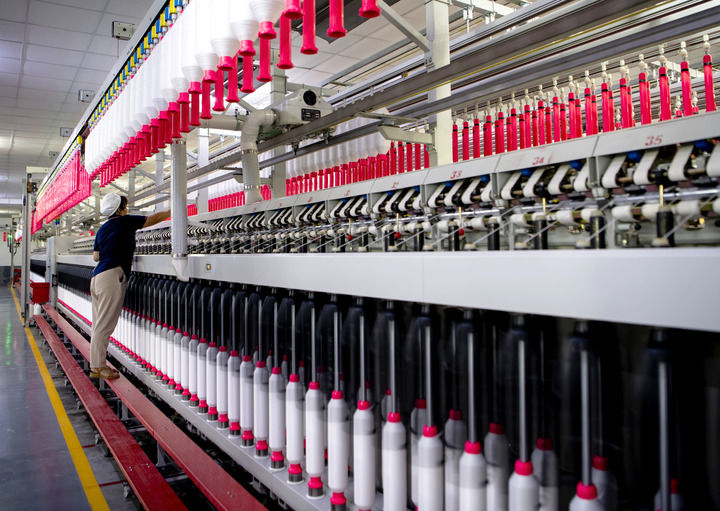 这是福建金源纺织有限公司5G智慧工厂生产线。该公司构建的“云、管、端”一体化的5G智慧工厂,实现了从订单到生产、设备、能源、质量、仓库等全业务流程的“一屏尽览”(7月17日摄)。