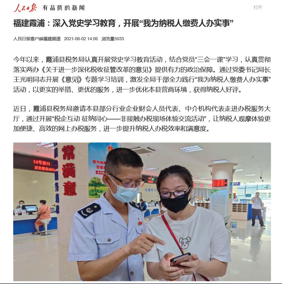 【人民日报】霞浦县税务局:深入党史学习教育,开展“我为纳税人缴费人办实事”