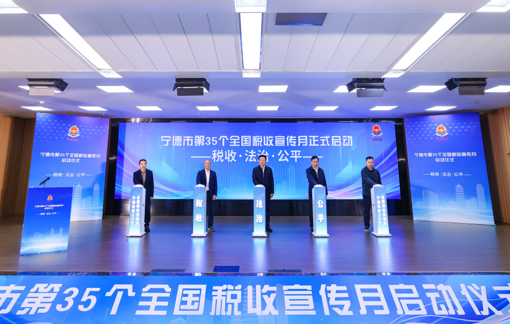 市政协党组副书记、副主席林岩峰,市税务局党委书记、局长、一级高级主办刘隆贵,蕉城区人民政府党组成员、副区长陈志强以及省人大代表尤信进、省政协委员张钟林共同按下活动启动按钮,拉开宁德市第35个全国税收宣传月的序幕。