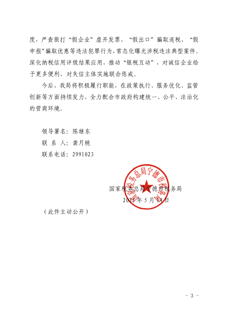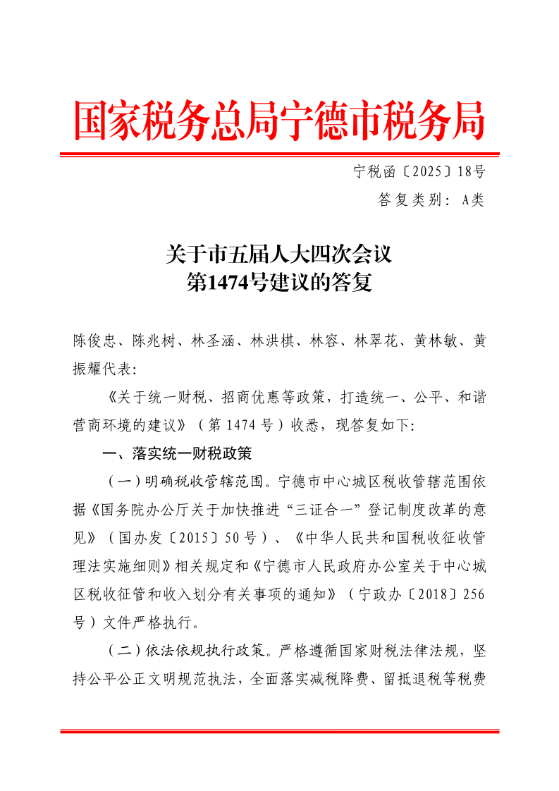国家税务总局宁德市税务局关于市五届人大四次会议第1474号建议的答复