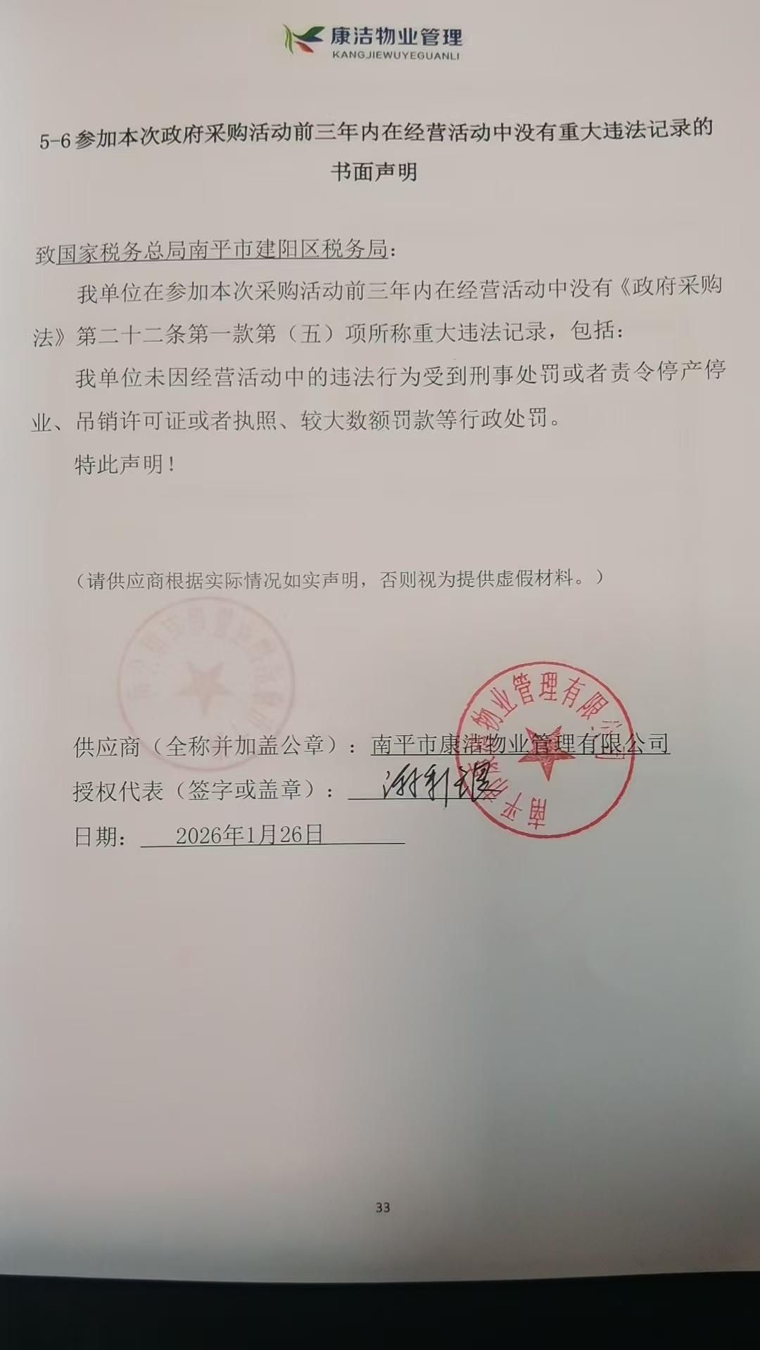 2.成交人南平市康洁物业管理有限公司评审总得分:97.00分