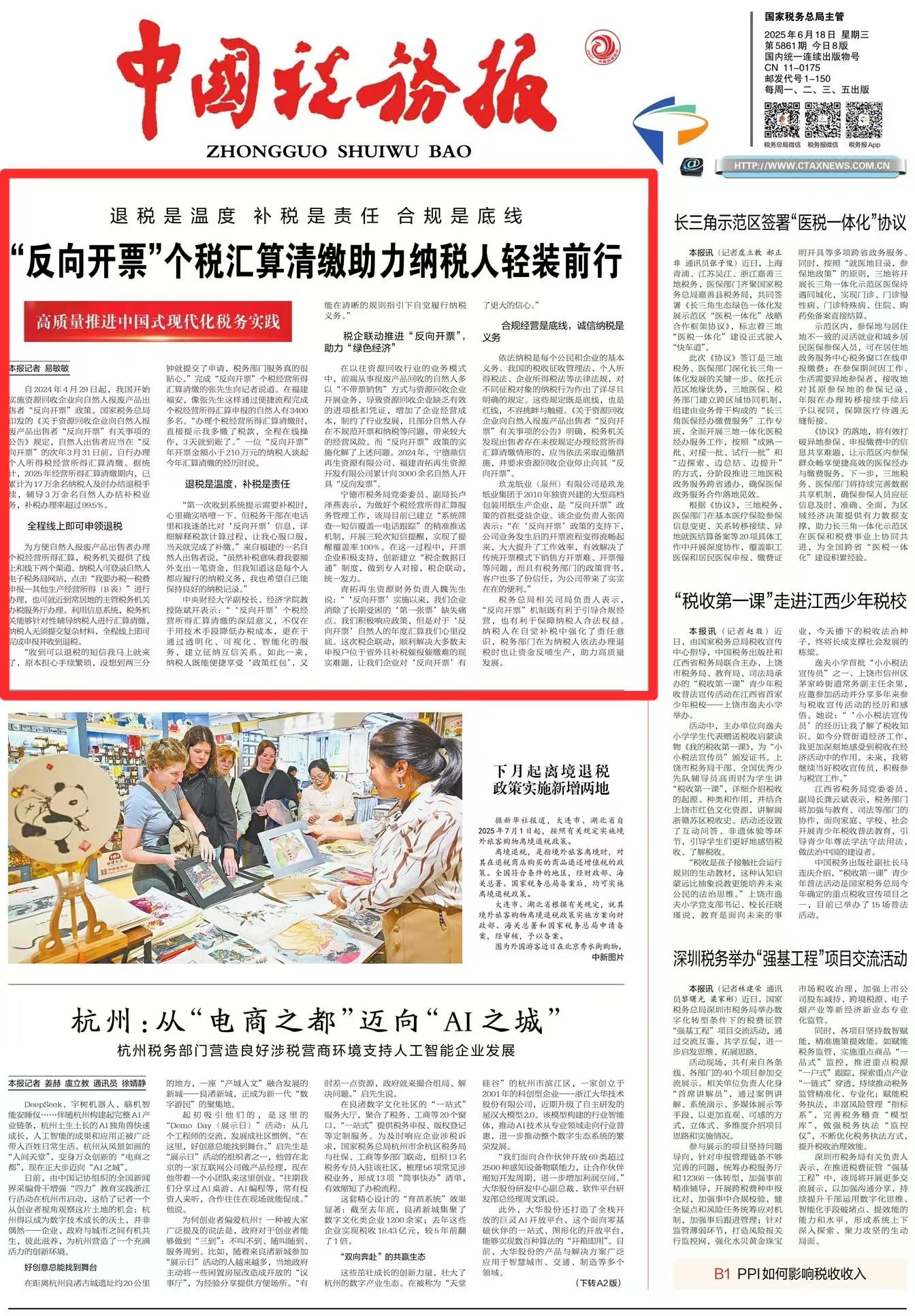 税务总局相关司局负责人表示,“反向开票”机制既有利于引导合规经营,也有利于保障纳税人合法权益。纳税人在自觉补税中强化了责任意识,税务部门在为纳税人依法办理退税时也让资金反哺生产,助力高质量发展。