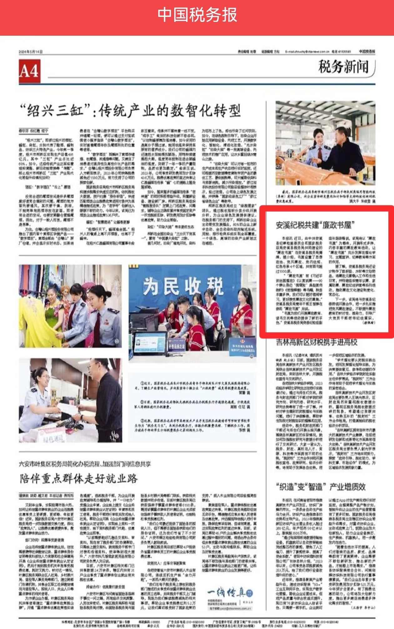 近日,由中共安溪县纪律检查委员会和国家税务总局安溪县税务局共同建设的“廉政书屋”在安溪县税务局揭牌。据介绍,书屋设置了思想政治、党风廉政、党内法规、红色传承4个区域,共有图书超过1000册。