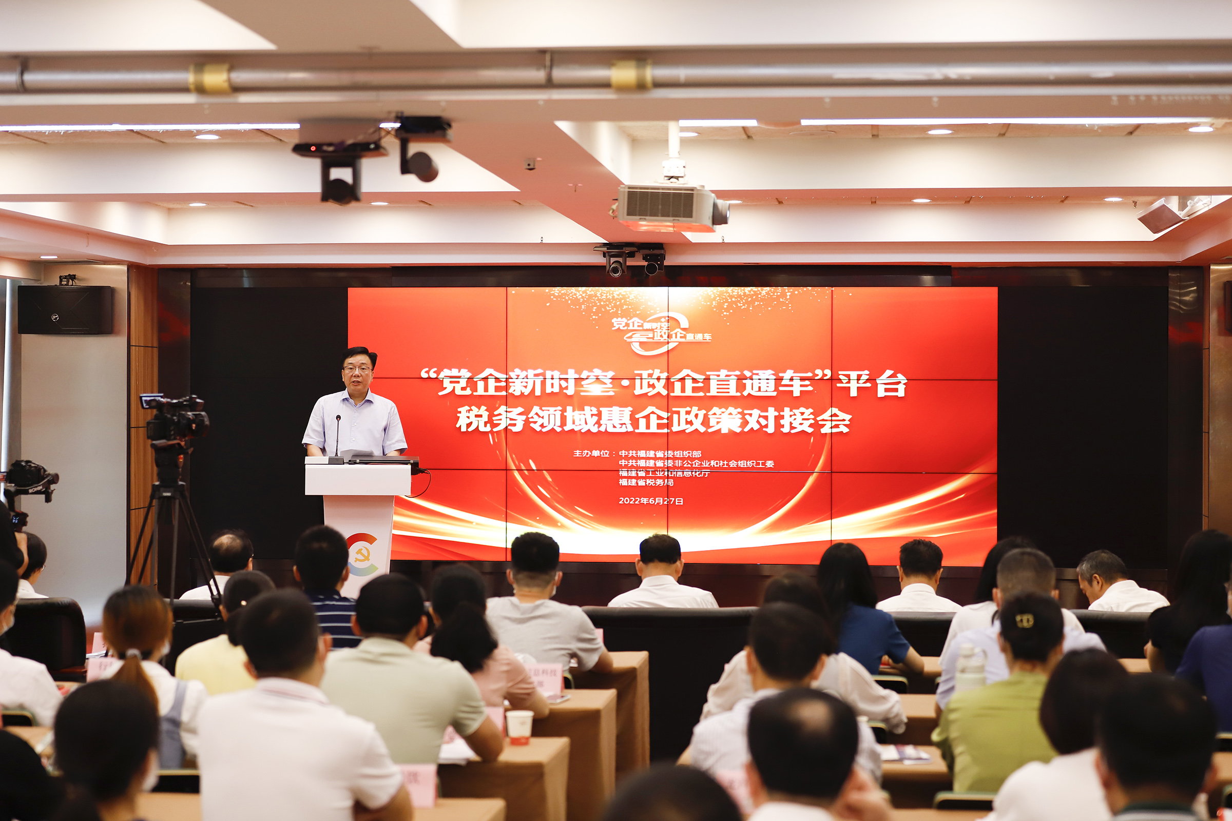 6月27日上午,福建省委组织部、省委两新工委、省工信厅、省税务局联合主办的“党企新时空·政企直通车”平台税务领域惠企政策对接会在省中小企业服务中心召开。省委组织部副部长兼省委两新工委书记林承通出席会议并讲话。省工信厅党组书记、厅长翁玉耀,省税务局党委书记、局长林京华,省工信厅党组成员、副厅长、一级巡视员厉云,省税务局一级巡视员陈慕斌出席会议。省委组织部副部长、省委两新工委专职副书记孙智英主持会议。