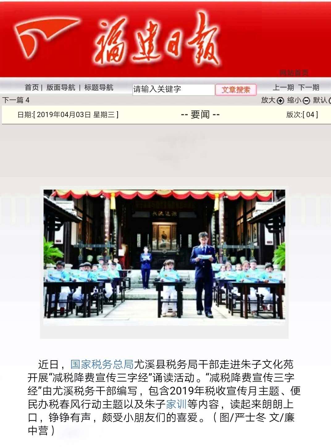 尤溪县税务局干部走进朱子文化苑开展“减税降费宣传三字经”诵读活动