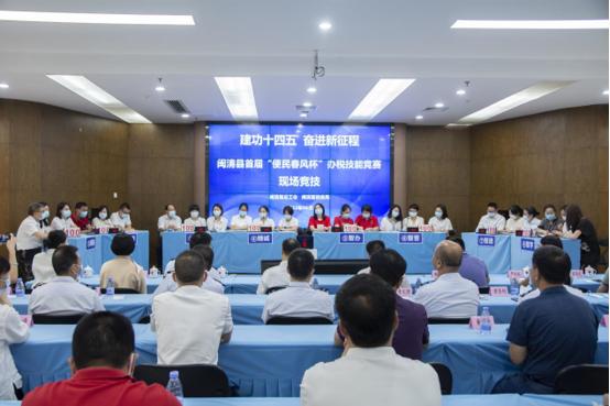 6月23日,国家税务总局闽清县税务局联合闽清县总工会开展首届“便民春风杯”办税技能竞赛--团体赛及颁奖仪式。全县86名财税人员经过前期的培训、笔试、实操环节,选拔出成绩前30%的人员共26人,其中的24人组成了8支代表队,分别取名进一步深化税收征管改革的四精目标任务--“精确”、“精细”、“精准” 、“精诚”,福州市税务局“智税e+”服务品牌的四项智慧服务--“智办”、“智答”、“智送”、“智学”。