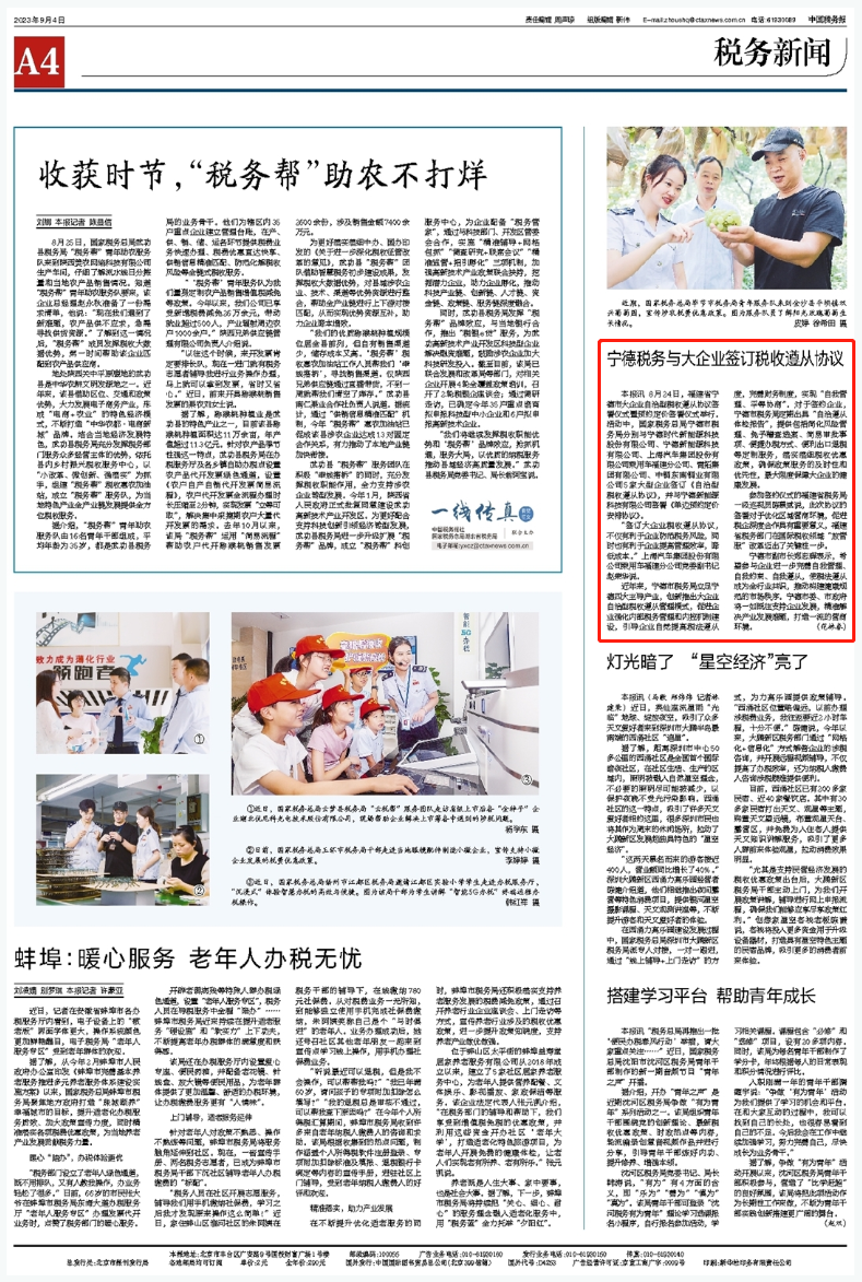 近年来,宁德市税务局立足宁德四大主导产业,创新推出大企业自治型税收遵从管理模式,促进企业强化内部税务管理和内控机制建设,引导企业自觉提高税法遵从度,完善财务制度,实现“自我管理、平等协商”。对于签约企业,宁德市税务局定期出具“自治遵从体检报告”,提供包括简化风险管理、免予稽查选案、简易审批事项、便捷办税方式、便利出口退税等定制服务,落实落细税收优惠政策,确保政策服务的及时性和优先性,最大限度保障大企业的健康发展。