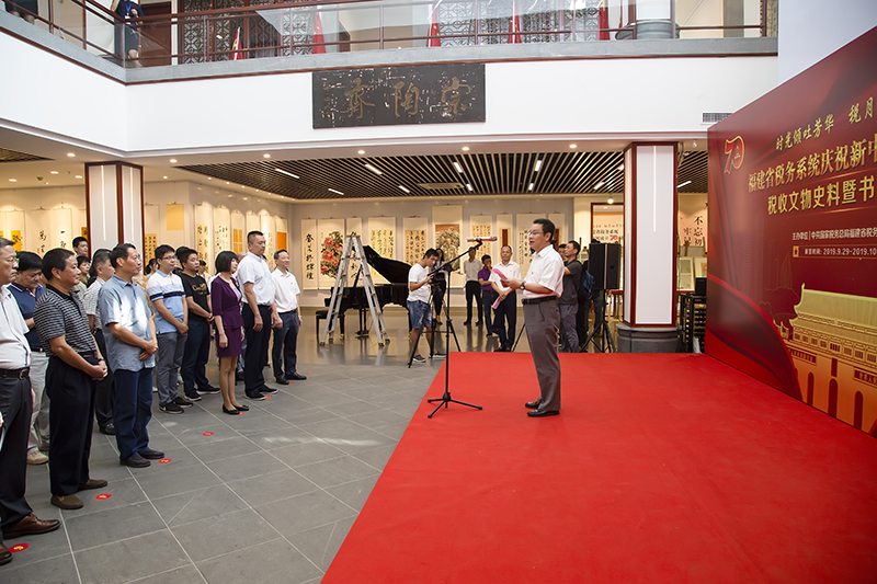 据了解,福建省税收文物史料暨书画摄影展收集整理了300多件税收史料文物精品和100余件书画摄影作品及老照片。其中包括了我国第三套反映地方特色题材的印花税票《闽构华章》;也有共和国成立初期最早的福建税收文献书籍;摄影和书画作品则通过不同的视角及笔触,表达了全省税务干部职工对伟大祖国的热爱、对税收事业的追求,对美好未来的憧憬。
