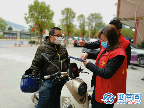 闽南网2月4日讯(福建日报新媒体·闽南网记者 梁政 通讯员 杨永峰 林小红 文/图)“进小区,请量体温!”2月3日,位于华安城关平湖社区的平湖花园小区门口,身穿 “红马甲”的志愿者正在小区大门口检测体温,做好排查工作。