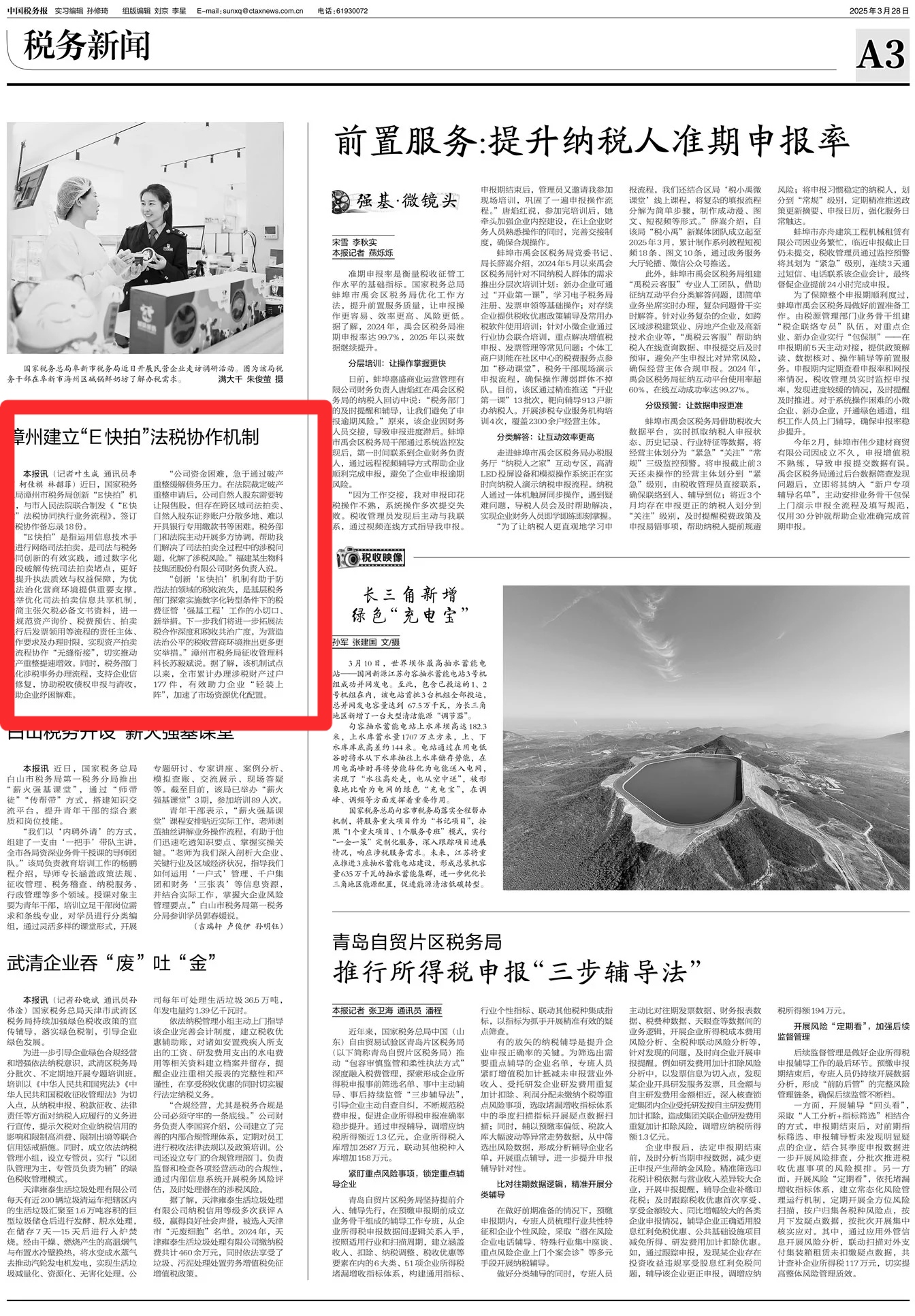 本报讯(记者叶生成 通讯员李可 柯佳祺 林韶菲)近日,国家税务总局漳州市税务局创新“E快拍”机制,与市人民法院联合制发《“E快拍”法税协同执行业务流程》,签订法税协作备忘录18份。