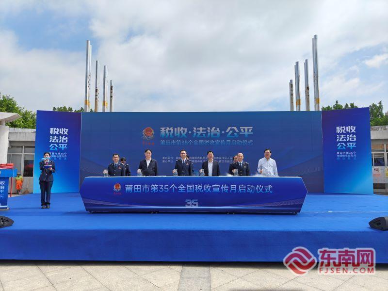 东南网莆田4月2日讯(江瑞鑫 通讯员 陈林琦 文/图)春风送暖,税宣当时。4月1日上午,莆田市第35个全国税收宣传月启动仪式在涵江区人民公园举行。莆田市税务部门、涵江区局司法局、人社局、医保局等8个部门领导干部,纳税人代表共计100余人参加活动。