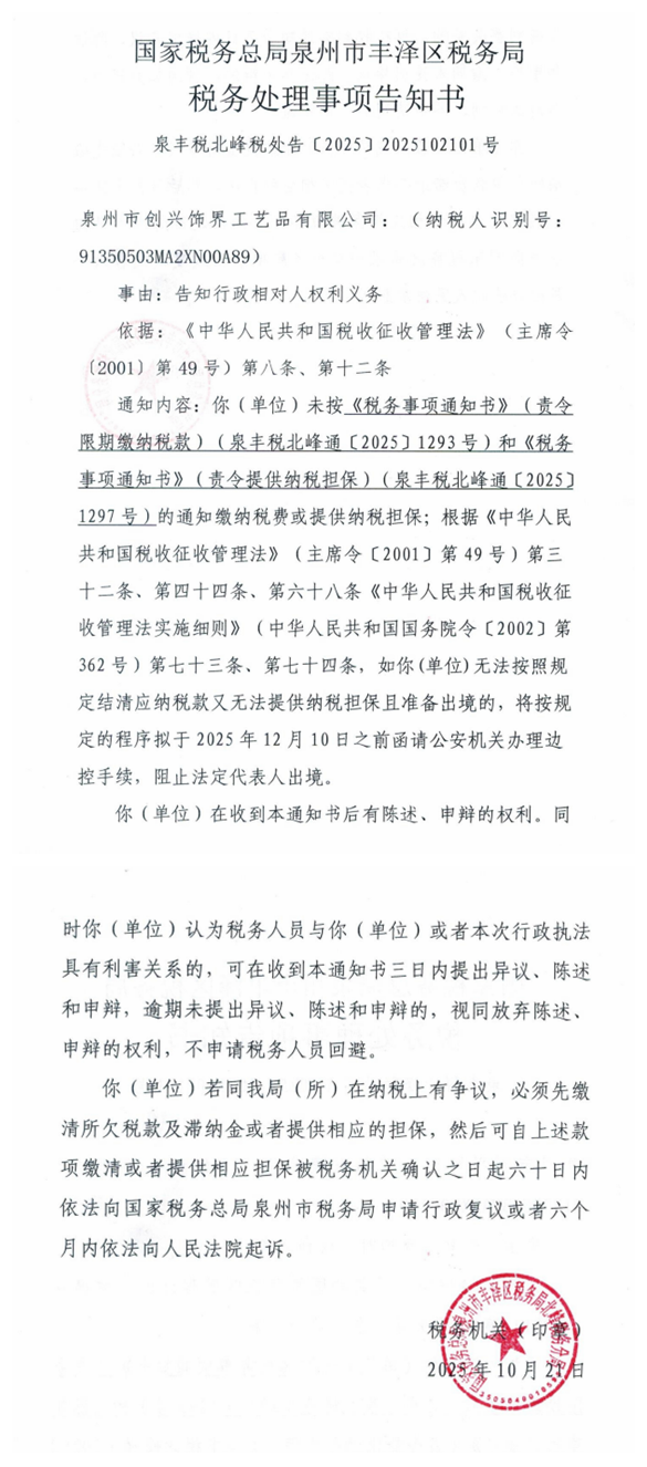 泉丰税北峰税处告 〔2025〕 2025102101号 |