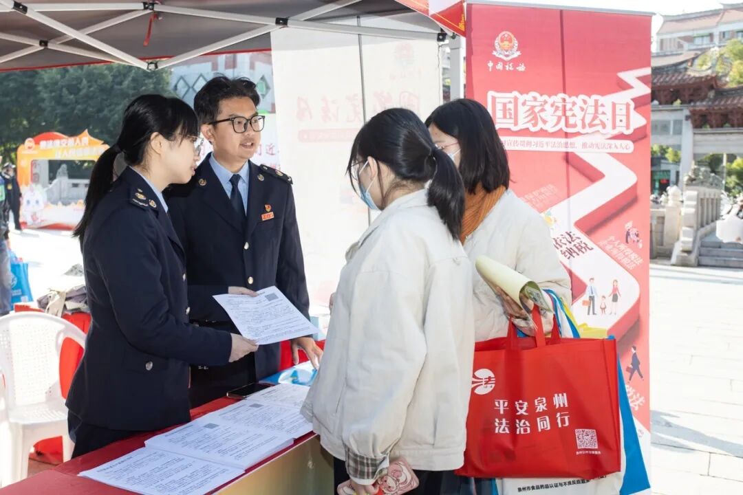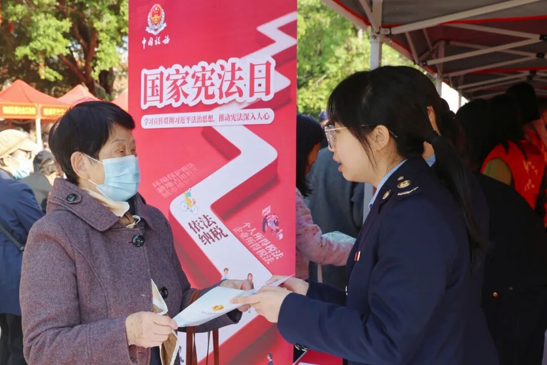 12月4日,在第十二个国家宪法日当天,国家税务总局泉州市税务局、国家税务总局泉州市鲤城区税务局联合多部门在泉州府文庙广场开展2025年泉州市“宪法宣传周”活动,通过摆放宣传展板、设立咨询展台、分发宣传资料向群众宣传宪法及税收法规,推动宪法深入人心。