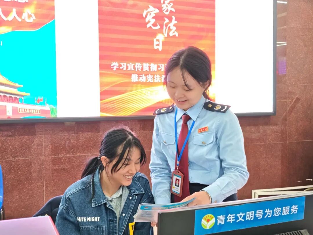 在全国宪法宣传周期间,国家税务总局南安市税务局青年文明号充分利用办税服务厅作为直面纳税人的一线阵地优势,积极开展普法宣传活动。活动利用办税服务厅LED屏滚动播放宣传海报,营造尊法学法浓厚氛围。青年干部们还在办税大厅设点,向纳税人缴费人发放《中华人民共和国宪法》读本、税收法律法规宣传折页以及便民办税服务指南等资料,将宪法宣传与税费服务相结合,用通俗易懂的语言向群众讲解宪法中关于公民权利义务的规定,阐释宪法与税收的关系。同时,针对群众关心的个人所得税专项附加扣除、社会保险费缴纳、小微企业税收优惠等热点政策问题进行解读,引导社会公众增强宪法意识,提升对税收法律的遵从度。