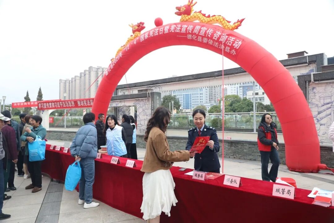 12月4日,国家税务总局德化县税务局会同有关部门在德化县瓷都广场联合开展国家宪法日集中宣传活动。活动以“学习宣传贯彻习近平法治思想 推动宪法深入人心”为主题,现场,税务干部热情地向过往市民发放《中华人民共和国宪法》读本和最新的税费优惠政策指南,并结合社会热点,用通俗易懂的语言讲解宪法中关于公民纳税义务与权利的规定。此次广场宣传活动让市民在交流中深化对宪法精神和税收法治的理解,有效提升了市民的法治意识,营造出浓厚的法治氛围。