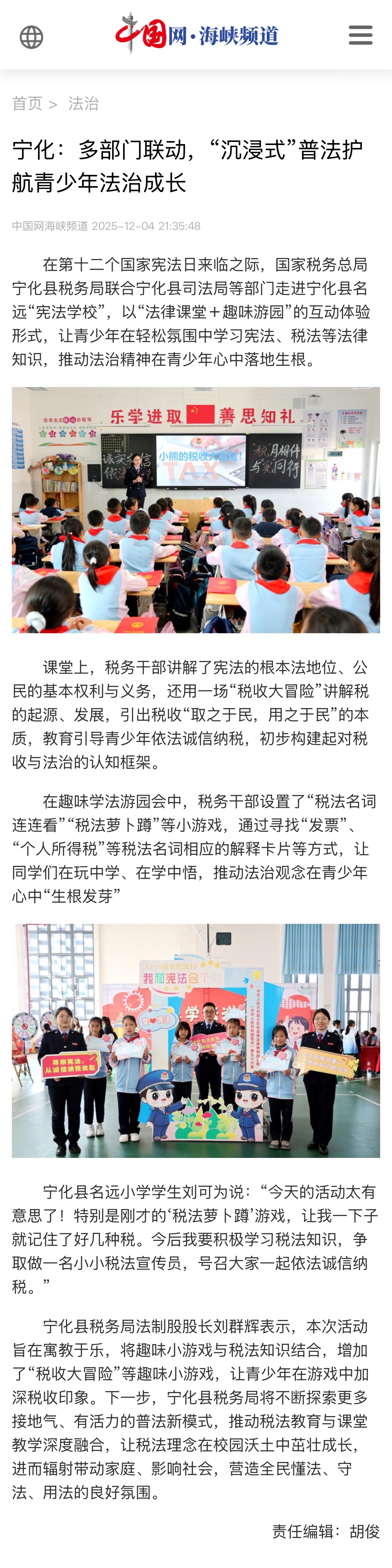 宁化税务:多部门联动,“沉浸式”普法护航青少年法治成长